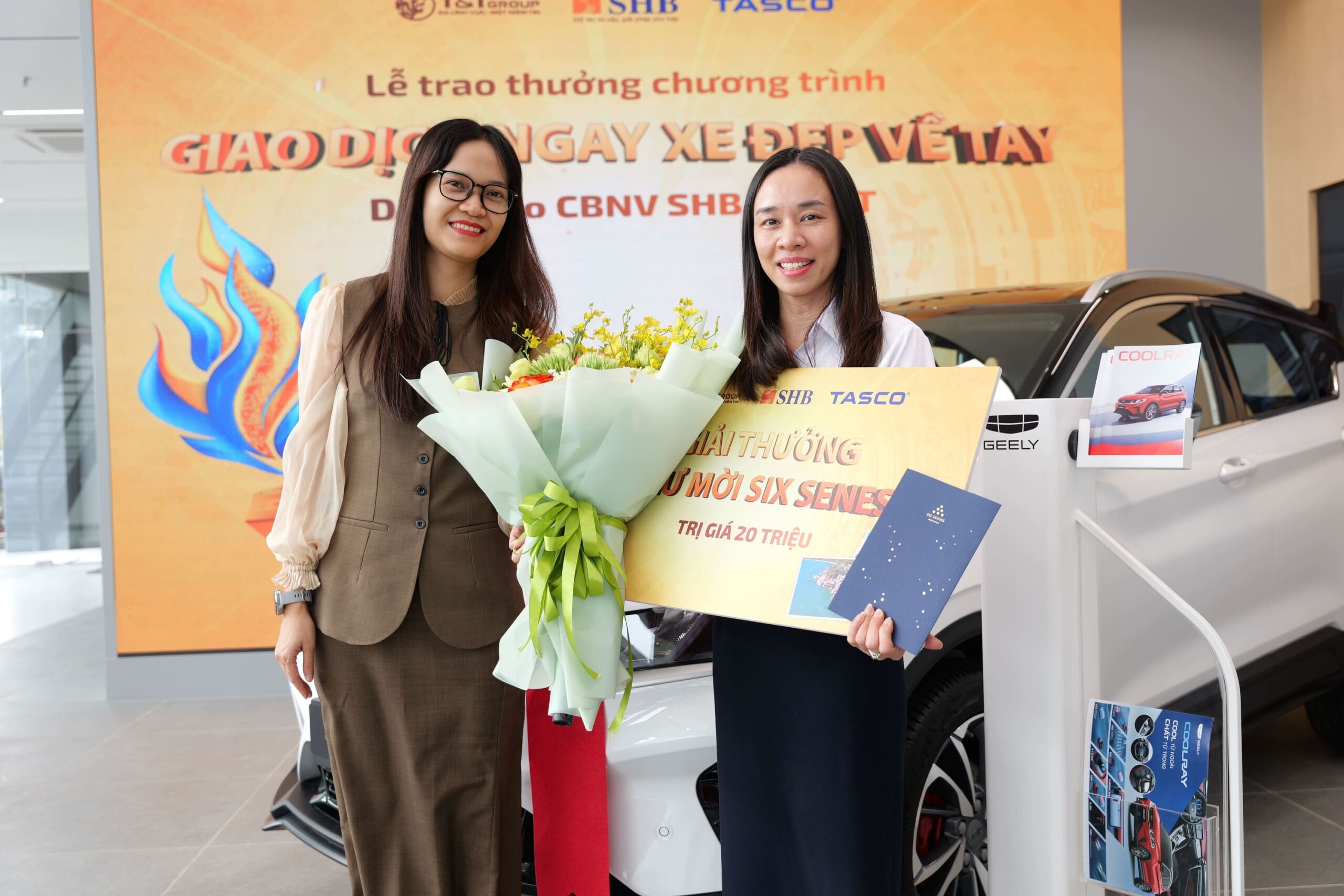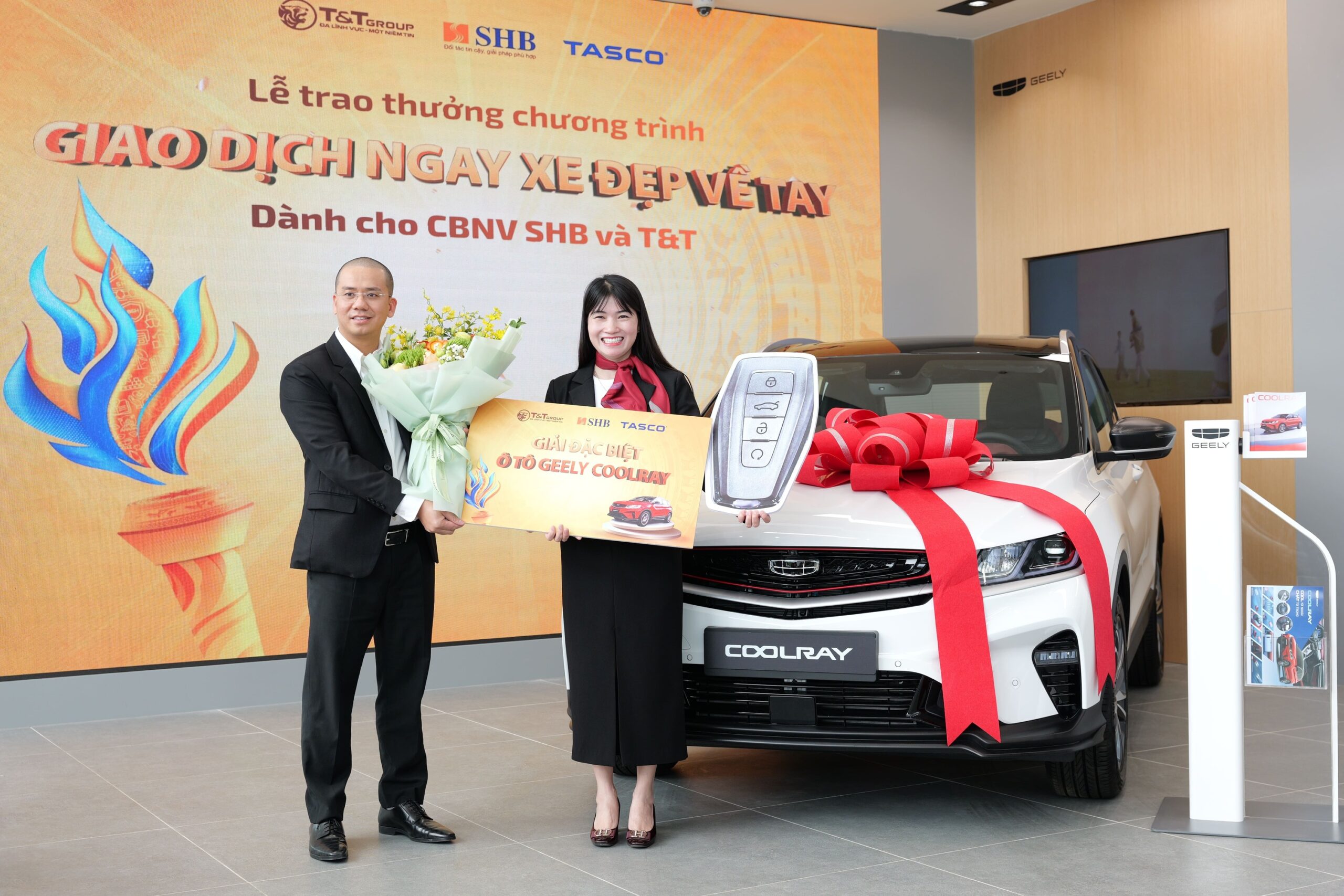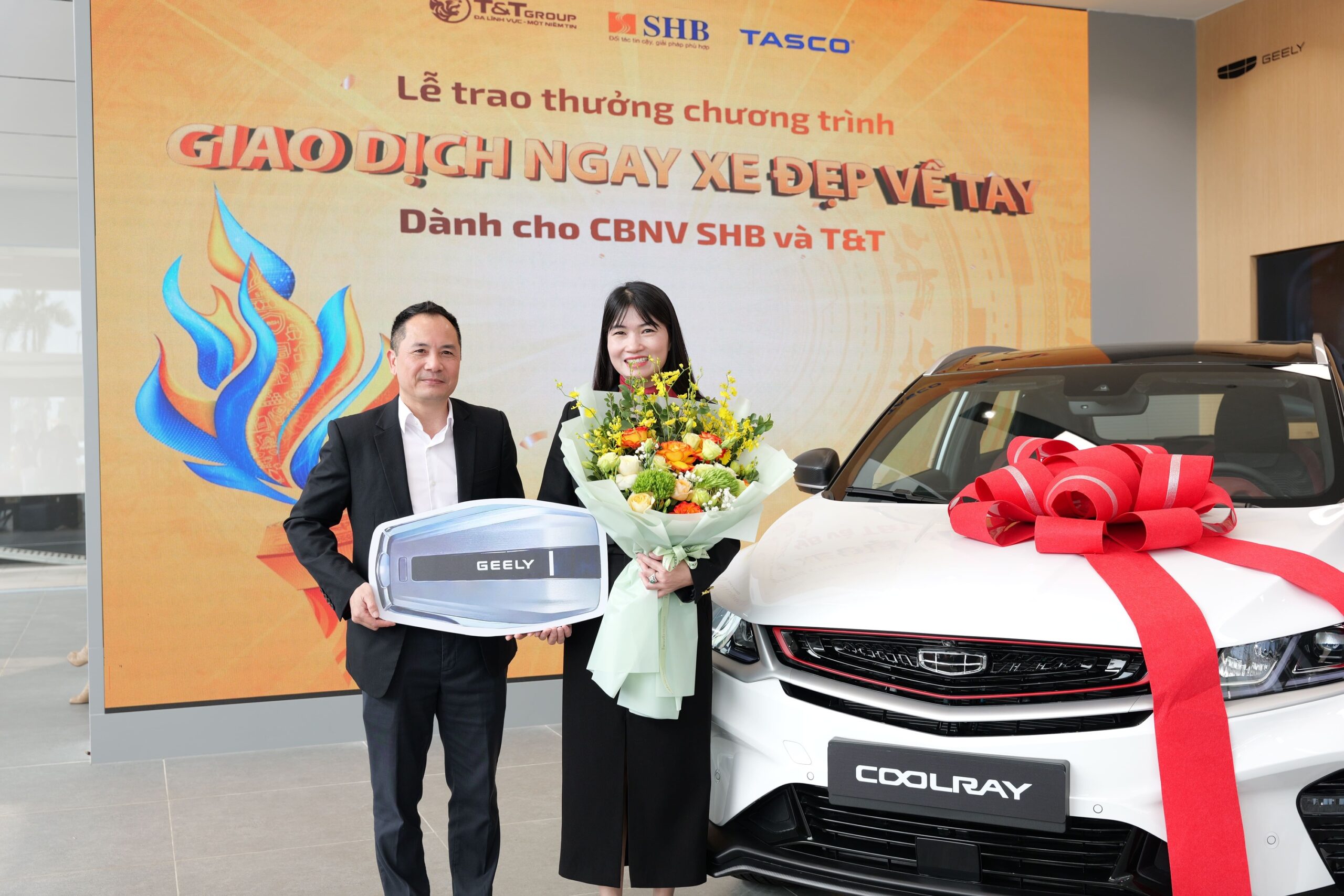 Lễ trao giải có sự tham dự của Bà Đoàn Thái Thanh Thủy – Phó Giám đốc Khối Ngân hàng Bán lẻ SHB và Ông Vũ Anh Tuấn – Phó Tổng Giám đốc Geely Phú Quốc, cùng hàng nghìn cán bộ nhân viên chứng kiến khoảnh khắc vinh danh đầy tự hào. Khi những cái tên được xướng lên, cả khán đài vỡ òa trong những tràng pháo tay chúc mừng. Cảm xúc hồi hộp nhanh chóng nhường chỗ cho niềm hân hoan khi những chiếc chìa khóa Geely Coolray được trao tận tay chủ nhân mới, đánh dấu cột mốc đáng nhớ trong sự kiện.